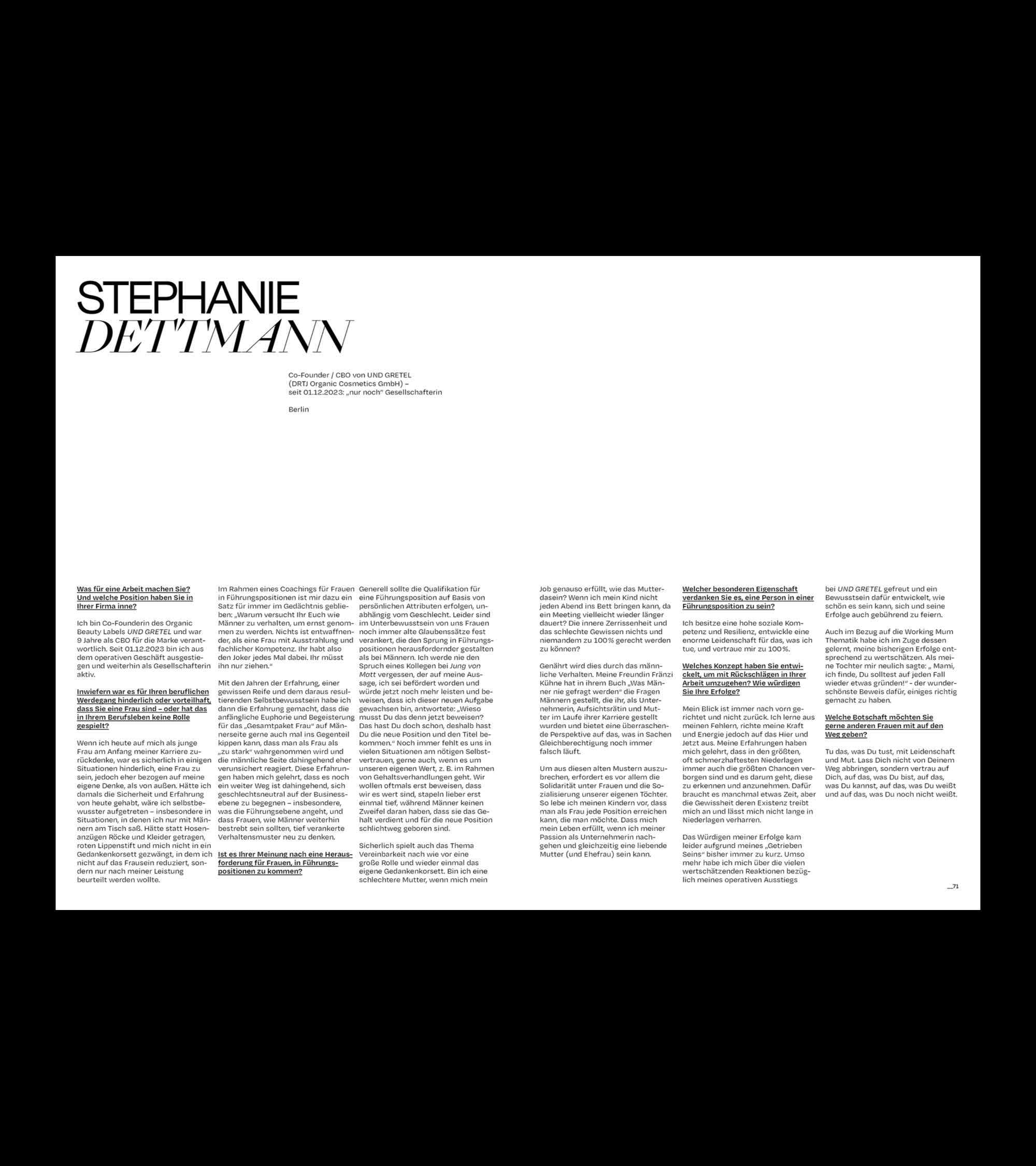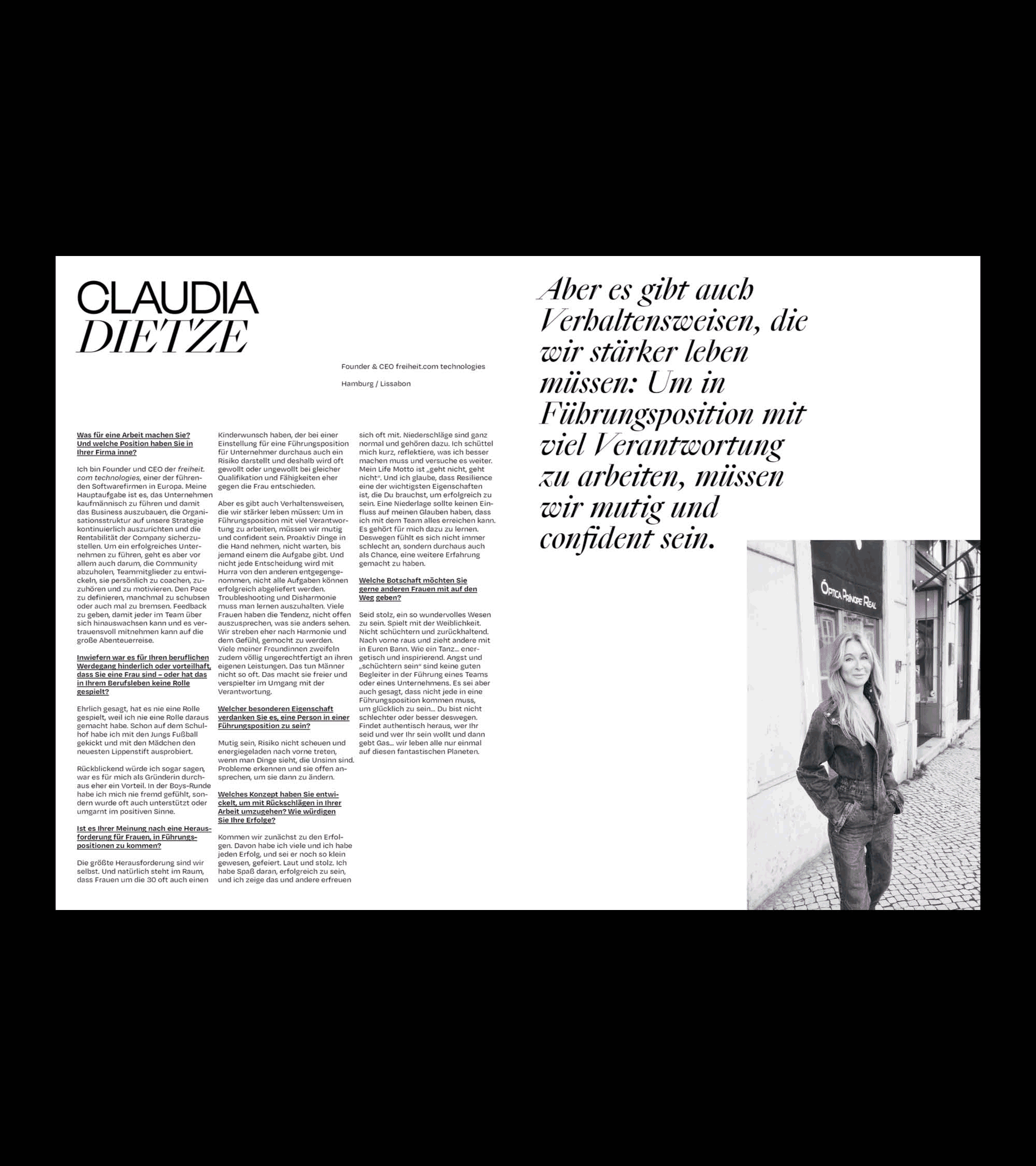„Women in Leadership” is a photo and film project initiated by the photographer Christine Lipski and a whole creative team showing inspiring women in leadership positions with a positive influence on society – in pictures and words. We accompanied the photographer from day one with a design for the project. Giving all parts of the project from concept to the exhibition its own personality.